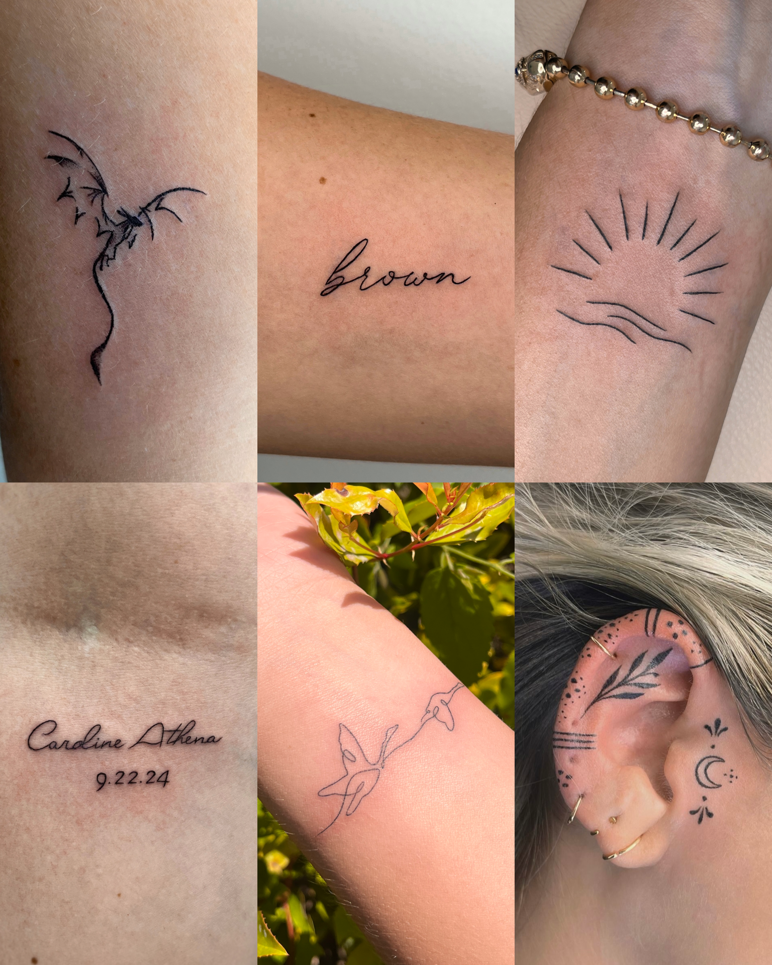 Fine Line and Mini Tattoos are delicate, precise designs that focus on clean lines and minimalistic details. Perfect for subtle, personal artwork, these tattoos allow for creative expression while maintaining an elegant, timeless look. Each piece is carefully crafted to suit your style and placement, resulting in refined and unique body art.